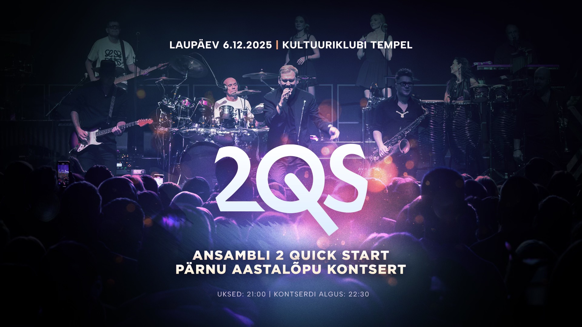 Veel enne, kui tõmbame aastale joone alla, annab ansambel 2 Quick Start Pärnus suurejoonelise kontserdi. Uksed avanevad 21:00 ja kontsert algab varajaselt 22:30. Kõlavad vanad head tuntud hitid kui ka värske materjal. Garanteeri endale hoogne detsembri sissejuhatus!